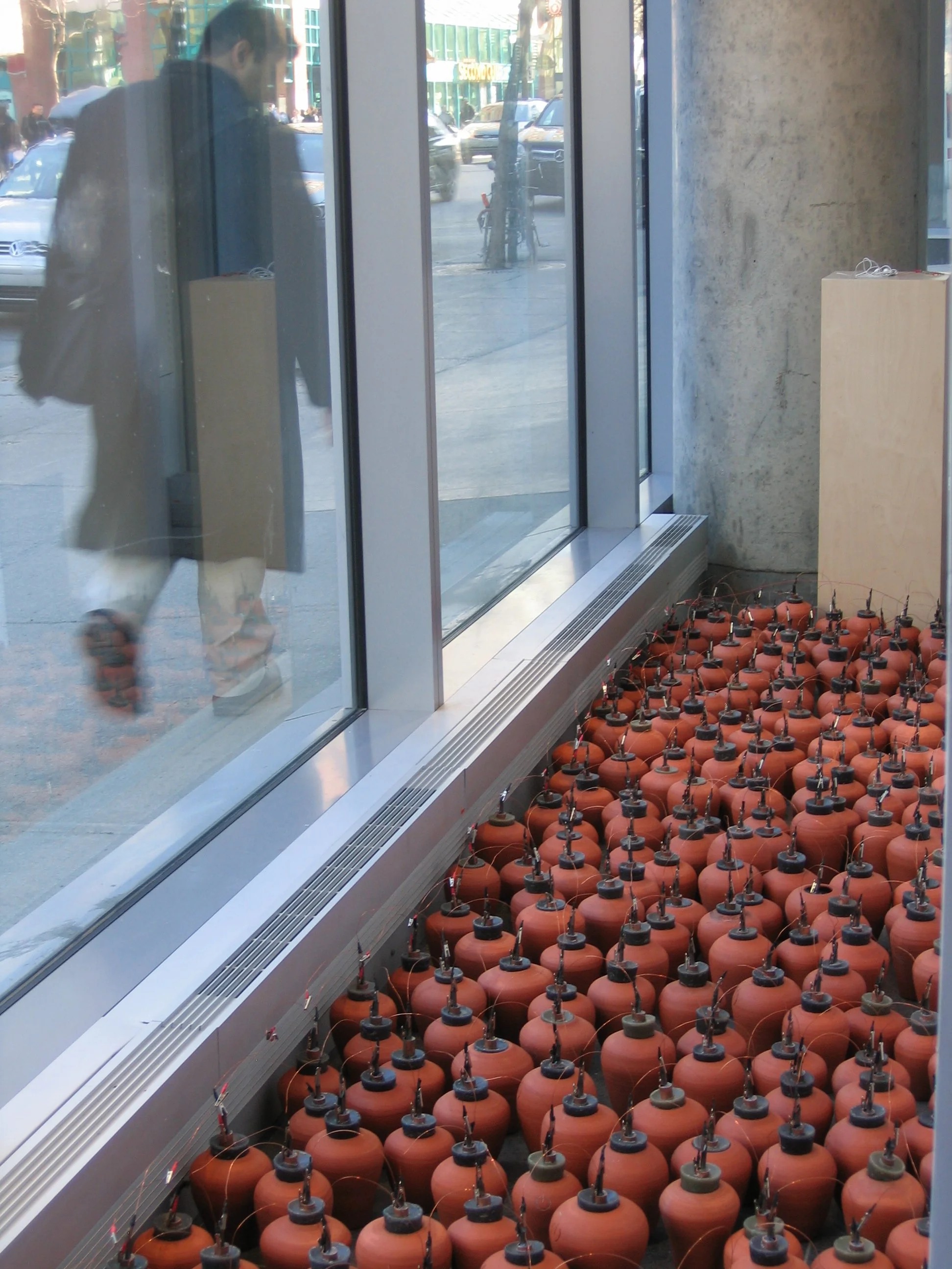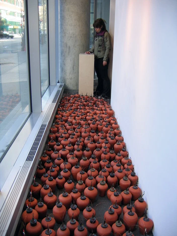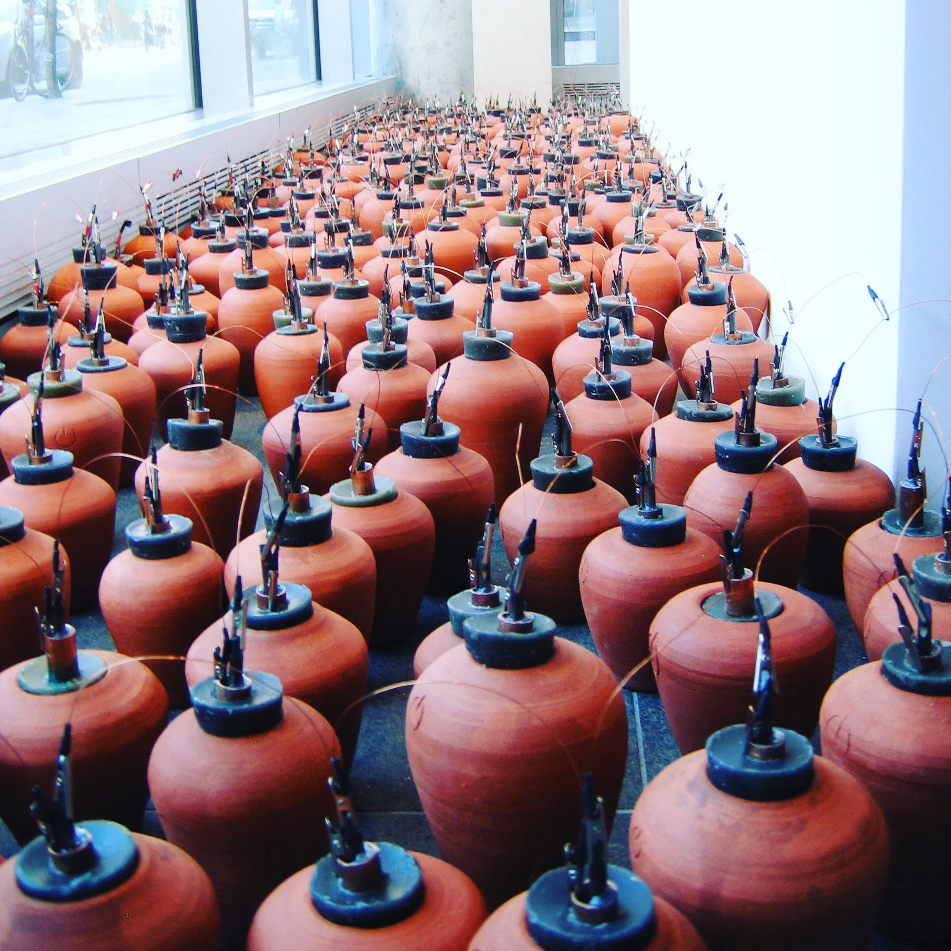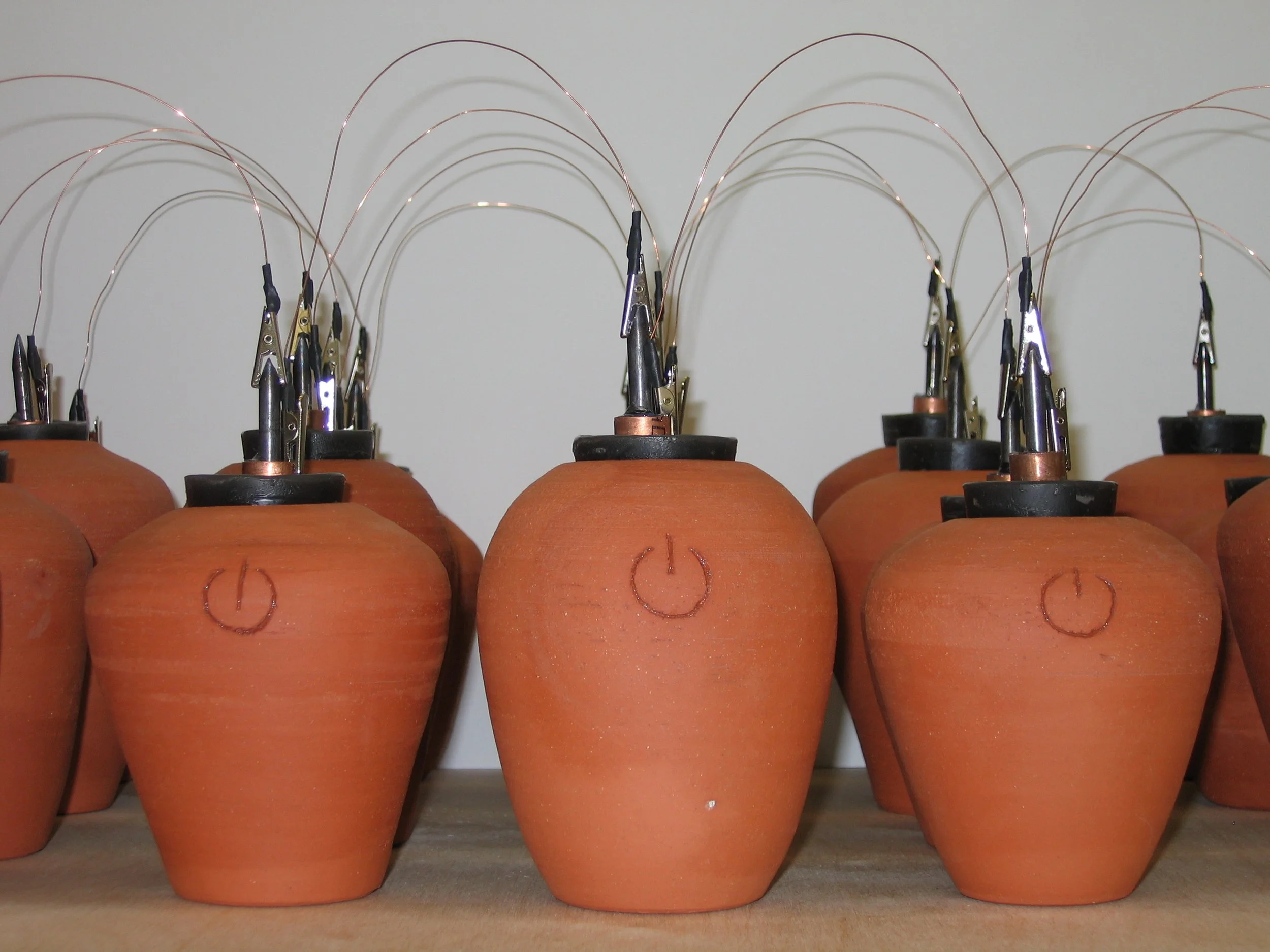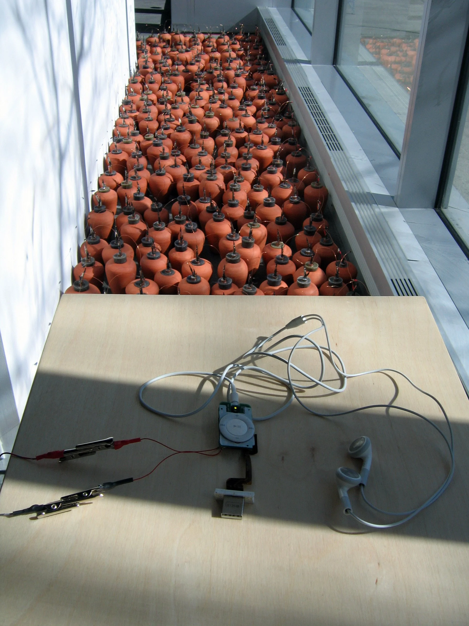 Passage connects 300 replicas of ancient batteries adapted to power an iPod shuffle with an audio component that documents the sounds of making the batteries.